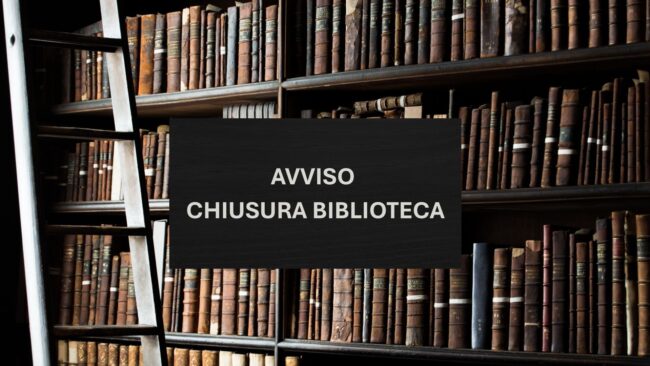 Avviso Causa grave carenza di personale, dal 1 settembre la Biblioteca osserverà il seguente orario: Lunedì e Giovedì 9.00 – 18.00 Martedì e Mercoledì 9.00 – 15.00 Venerdì 9.00 – 12.00